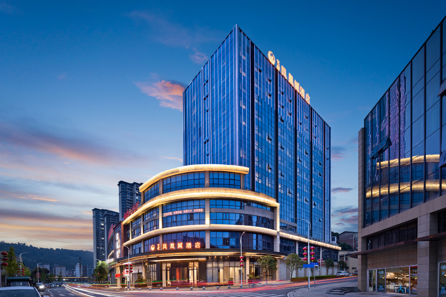 【服务酒店】酒店位於邵阳县塘渡口沿河街夷江湖畔,是一家集客房、餐饮、会议、休闲、娱乐为一体的高端豪华酒店,周边有天子湖度假风景区、凤凰城购物广场、梅子院公园、百货大楼,沿河风光带夜宵城等热门商圈、吃喝玩乐,购物休闲、样样俱全,交通便利快捷,步行到县中医院、十一中学仅五分钟路程,距离县委县政府、凤凰城购物广场仅二分钟路程,距离天子湖度假风景区仅十五分钟车程,距离邵阳高铁站仅四十分钟车程,酒店拥有大型地下停车场,配有二百多个车位,停车场可直达酒店大厅和客房。【酒店主题】酒店由国内着名米修设计公司设计,是当地独具个性的地标性建筑江景酒店,拥有各式主题江景客房:雅致房、轻居房、电影房、茶室商务房、棋牌房、行政套房,配有自助餐厅、会议室、健身房、洗衣房、大堂吧、中餐包厢、宴会厅;房间配套高档国际床垫、国际品牌洗护套装,全屋智能、水循环中央空调,千兆无线网络;温馨、舒适、智能、时尚、安心,深受年轻人及成功人士的喜爱。【酒店附近】出门即商业中心,国际商场、麦当劳、瑞幸咖啡、国际影城、商务KTV、桌球俱乐部、健身游泳中心、购物超市、美食城、小童亲子乐园、沿河风光带夜宵街等等。【酒店服务】自助早餐、免费下午茶、免费夜宵、免费洗衣、免费烫衣、免费睡前牛奶、提神咖啡、一次性环保五件套(面巾、浴巾、床单、被套、枕套)、一次性袜子、一次性内裤、一次性眼罩、一次性耳塞、卫生巾、卸妆巾、卫生棉等60多项免费管家式服务。【酒店理念】以温馨舒适的环境、贴心的服务,给客人带去幸福感,并感到物有所值,将酒店打造成邵阳县对外宣传和接待的形象窗口,即使离家千里,入了凤凰城,这里的一品一物,丝毫不是借用,而是归来,欢迎回家,我们的家!
